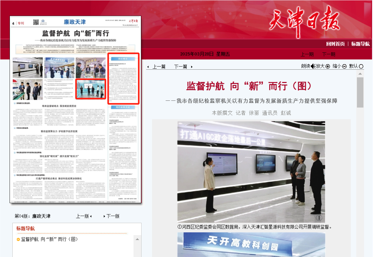 《天津日报》报道 | 监督护航 向“新”而行